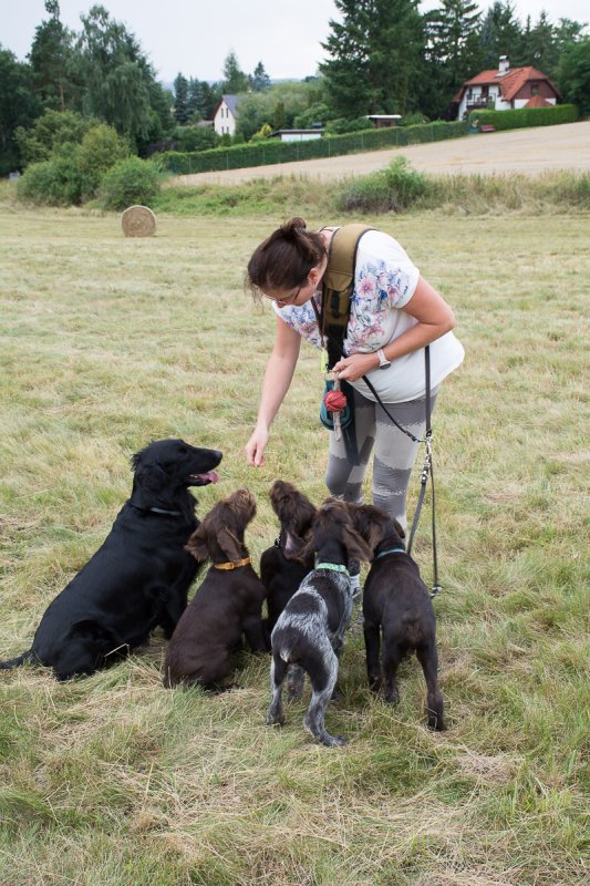 Nutno říci, že jsme léto věnovali víceméně jenom štěňatům, protože některá odcházela až ve 3 měsících a později. Například proto, že pokud šla do Německa, musí mít očkování proti vzteklině a navíc je vyžadována další ochranná lhůta. Ještě že je žena učitelka a měla prázdniny.