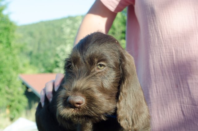 Štěňatům je 9 týdnů. Pěkně rostou a každé je již trošku jiné. Mají za sebou druhé očkování a za dva týdny je čeká očkování proti vzteklině. Za pár dní je znovu odčervíme.