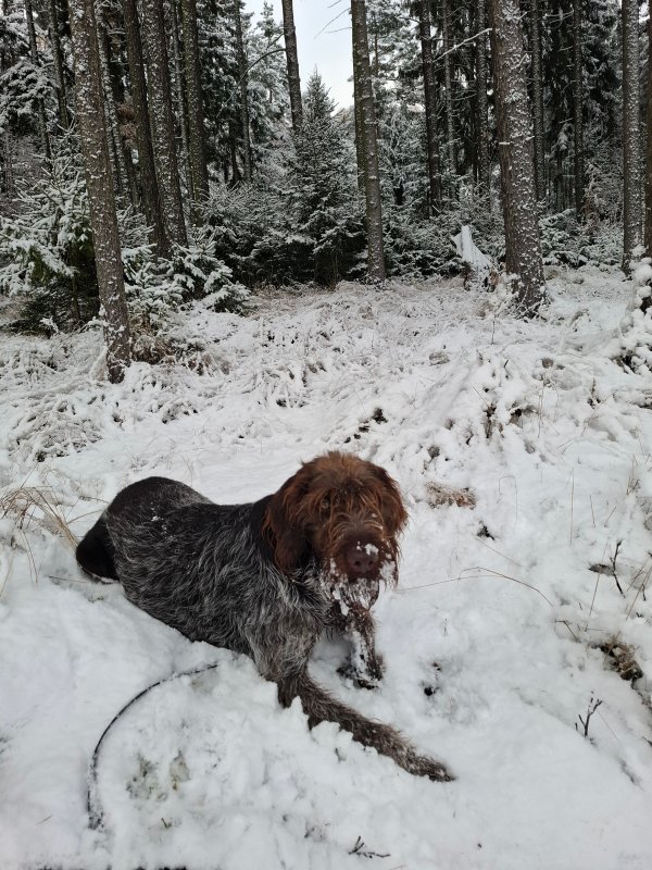 Majitelé Vašíka (Aron od Velkého Budína) nám poslali pár fotografií, jak si Vašík užívá první sníh.