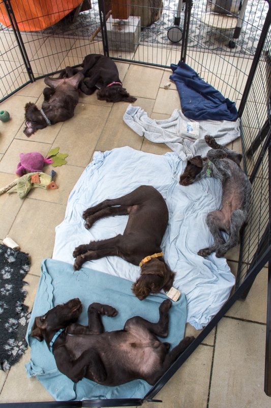 Snaha fotit selhávala na rychlosti štěňat, které se na vteřinu nezastavila. Také potom padla za vlast a odpočívala.