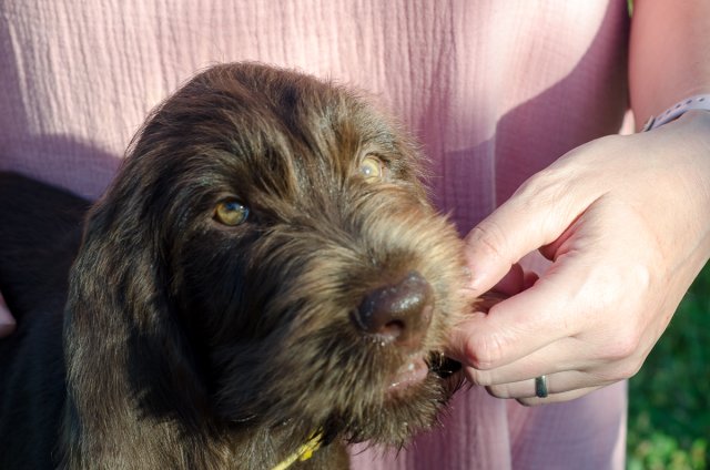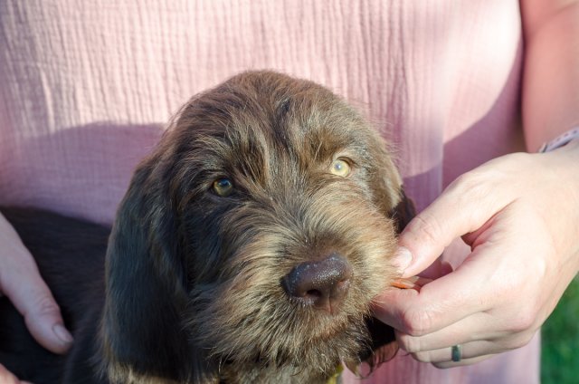 Štěňatům je 9 týdnů. Pěkně rostou a každé je již trošku jiné. Mají za sebou druhé očkování a za dva týdny je čeká očkování proti vzteklině. Za pár dní je znovu odčervíme.