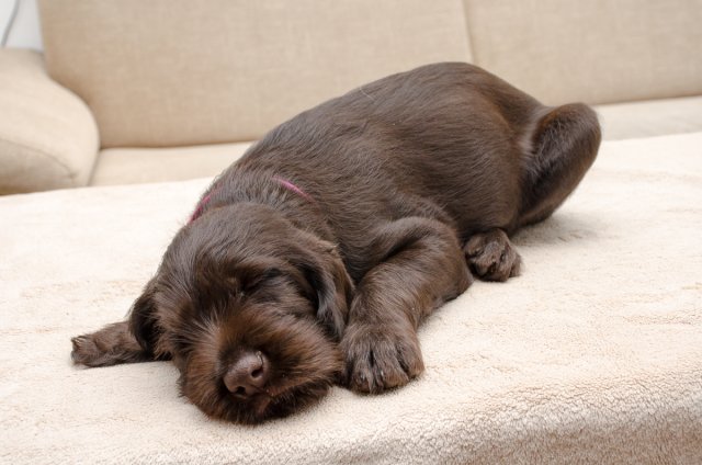 Dnešek byl ve znamení velkého vedra. Ve stínu bylo kolem 34°C. Štěňata nemohla být venku a tak byla v domě na chladné dlažbě. I tak je to velmi vyčerpávalo a když večer přišly bouřky, nebyl prostor na focení venku. Fotili jsme tedy doma, ale hafani už byli úplně tuzí a chtěli spát.